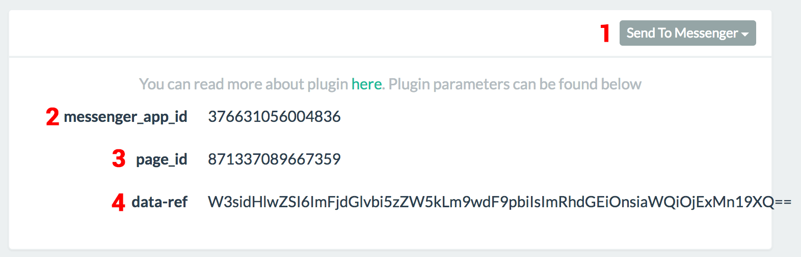 Render "Send to messenger" plugin provided by Facebook. After user clicks Facebook button trigger specified responses. Read more about plugin.